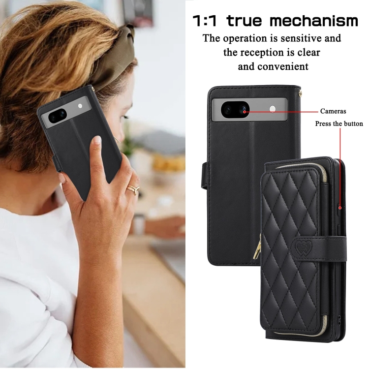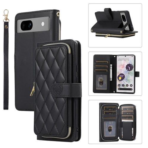 Funda de Cuero Tipo Billetera con Cremallera Completa y Diseño Romboidal para Google Pixel 7A (Morado)
