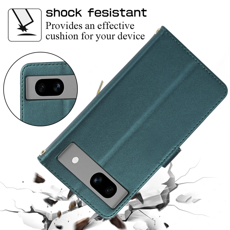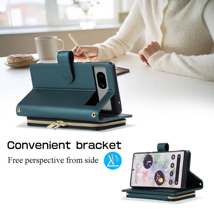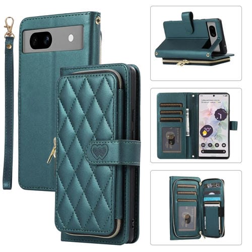 Funda Cuero Tipo Billetera con Cremallera Completa Diseño Romboidal para Google Pixel 7A (Verde)