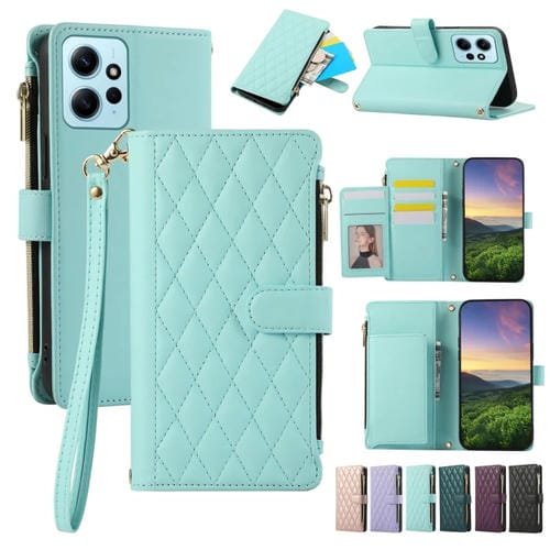 Funda de Cuero Tipo Billetera con Cremallera Rombal Global para Redmi Note 12 4G (Cian)