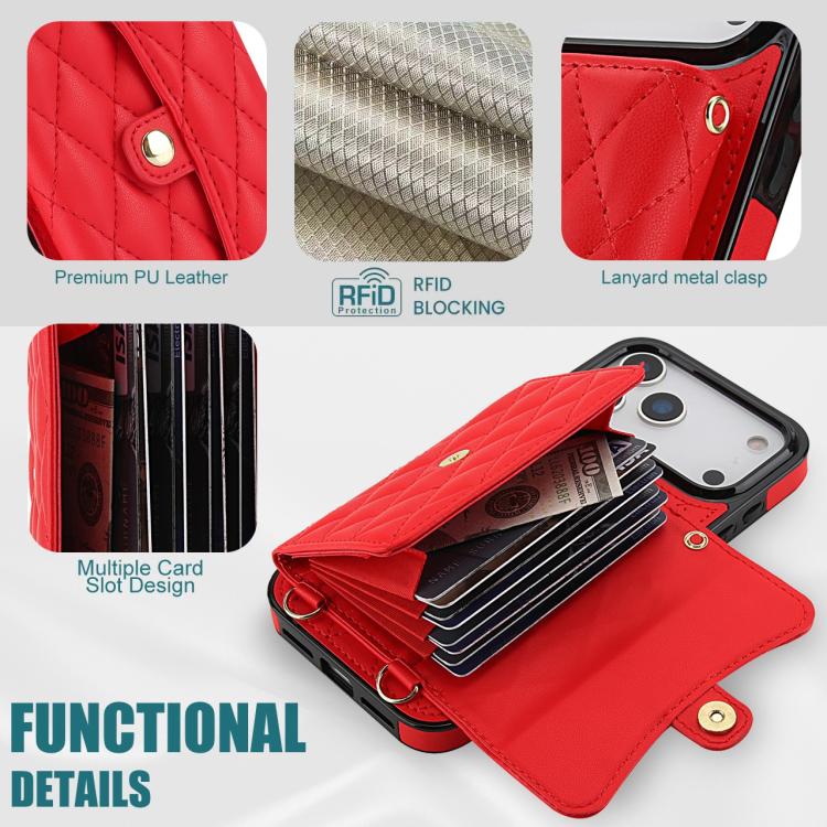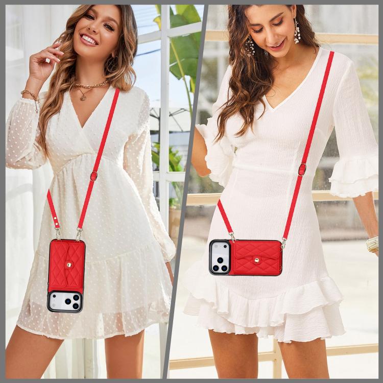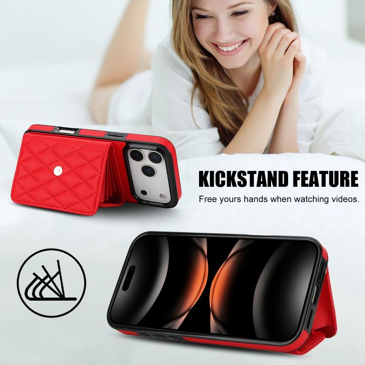 Funda de cuero tipo cartera horizontal con diseño rómbico cruzado para iPhone 17 Pro (roja)