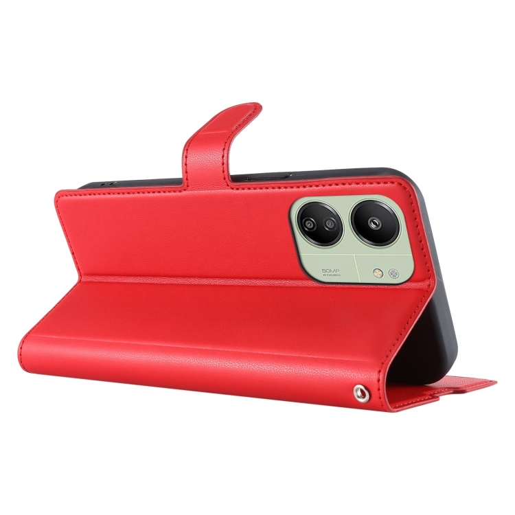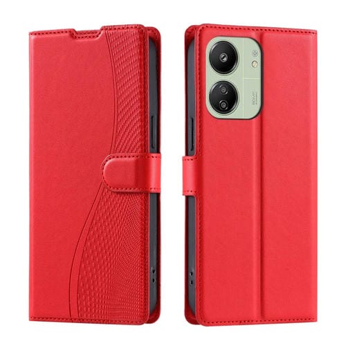 Funda de Cuero Ultrafina con Puntos de Voltaje Global para Xiaomi Poco M6 5G/C65 (Roja)