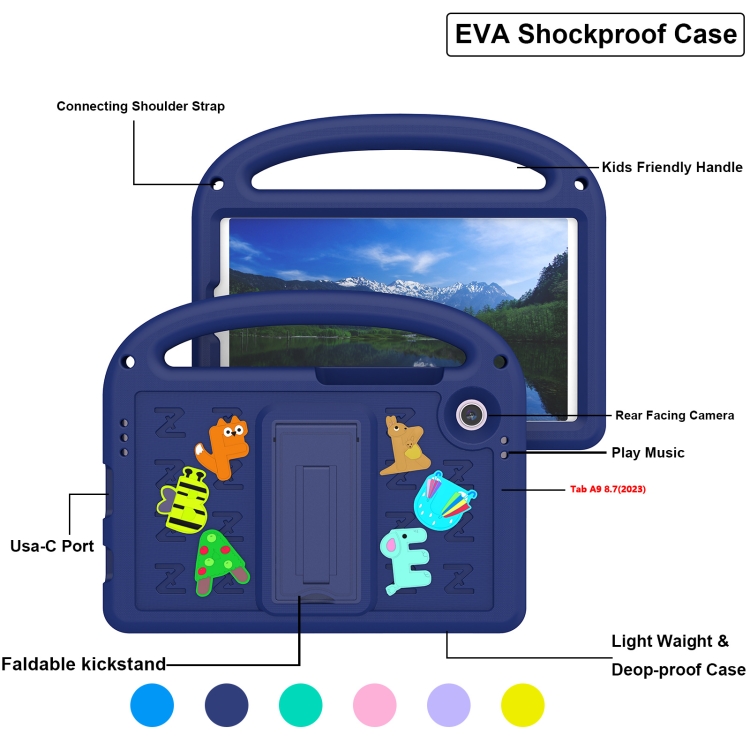 1. Material: Hecho de material EVA y PC resistente a los impactos, evita eficazmente que la tableta se caiga, golpee y raye accidentalmente, súper a prueba de golpes.