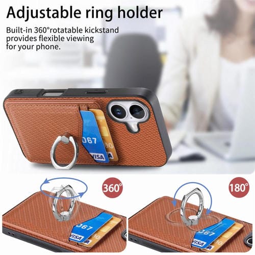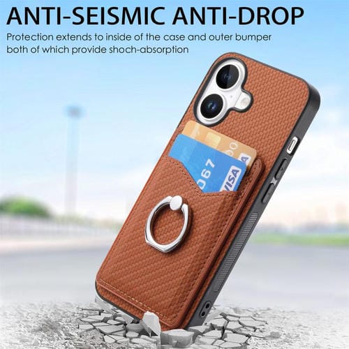 Funda de fibra de carbono con anillo para tarjeta para iPhone 17 (marrón)