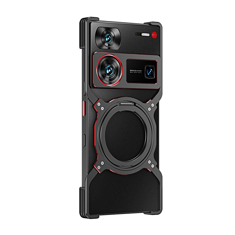 Funda Metal para Teléfono ZTE Nubia Z60 Ultra con Soporte Magsafe y Brazo Mecánico (Negro y Rojo)