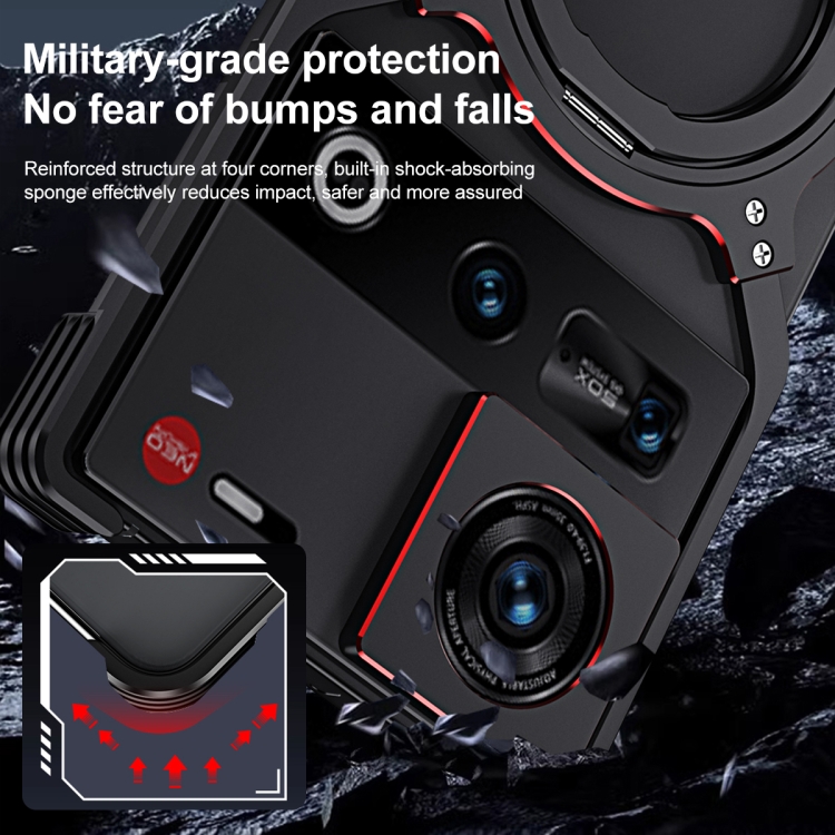 Funda de Metal para Teléfono ZTE Nubia Z70 Ultra con Soporte Magsafe y Brazo Mecánico (Negro y Plateado)