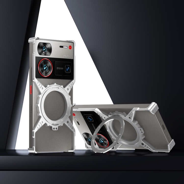 Funda Metal sin Bordes con Soporte Magnético para ZTE Nubia Z70 Ultra Gear (Plateada)