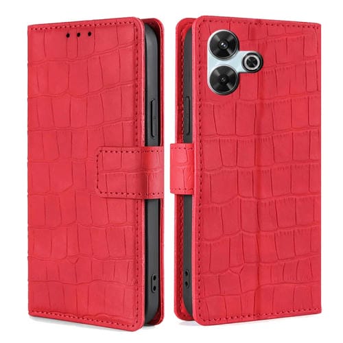 Funda de Piel con Cierre Magnético y Diseño de Cocodrilo para Redmi 13 4G (Rojo)
