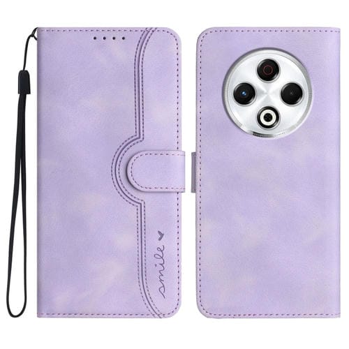 Funda de Piel para Tecno Spark 30 4G con Diseño de Corazón (Morado)