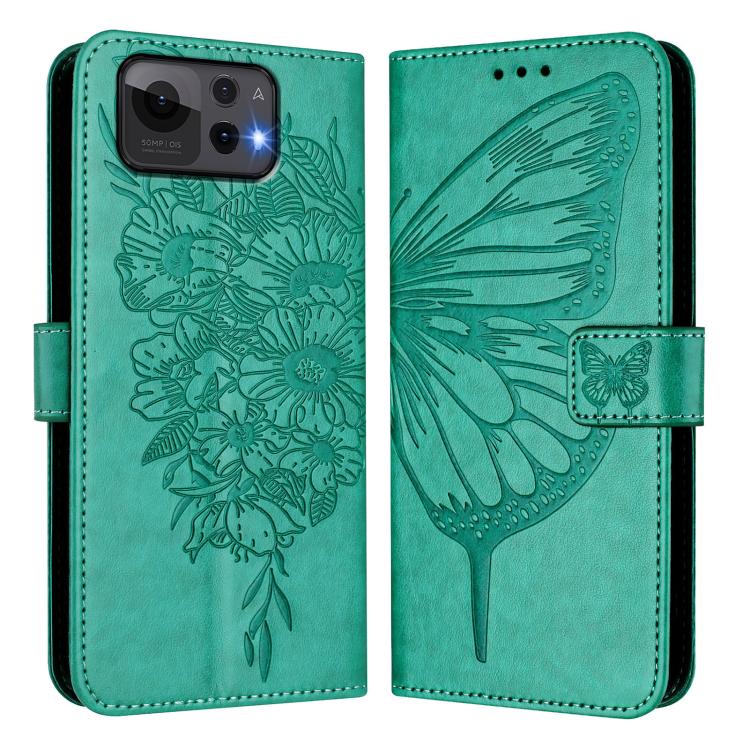 Funda de Piel para Asus Zenfone 12 Ultra con Diseño de Mariposa en Relieve (Verde)