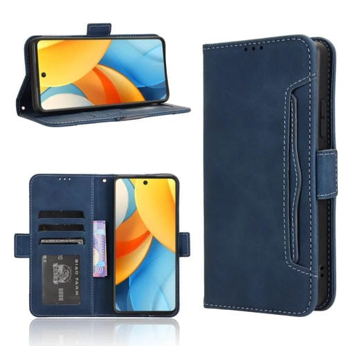 Funda de Piel Textura Becerro con Ranuras para Tarjetas para ZTE Blade V60 (Azul)