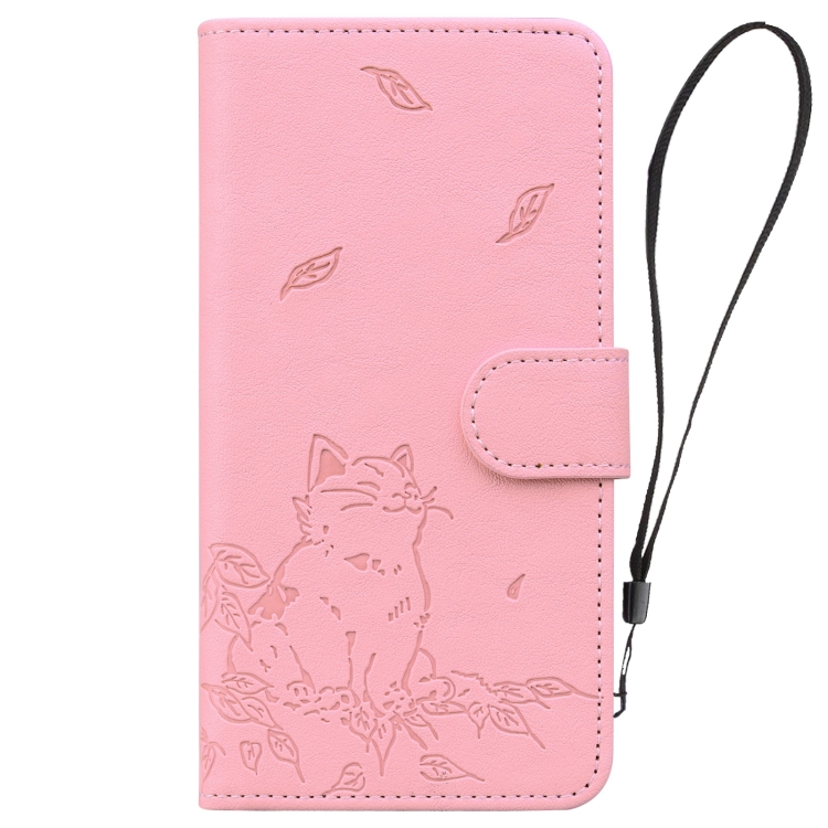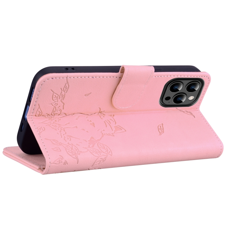 Funda de Piel iPhone 16 Pro Estampado de Gato (Rosa)