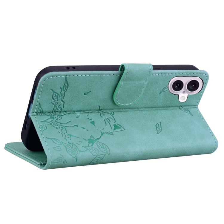 Funda de Piel para iPhone 16 Estampado de Gato (Verde)