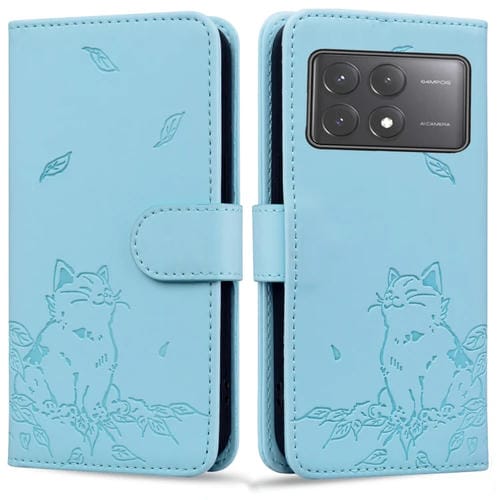 Funda de Piel con Estampado de Gato para Xiaomi Poco X6 5G (Azul Cielo)