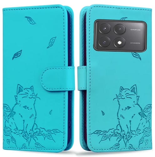 Funda de Piel con Estampado de Gato para Xiaomi Poco X6 5G (Azul Lago)