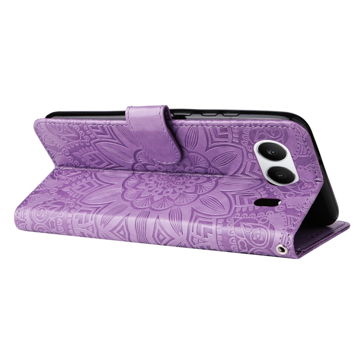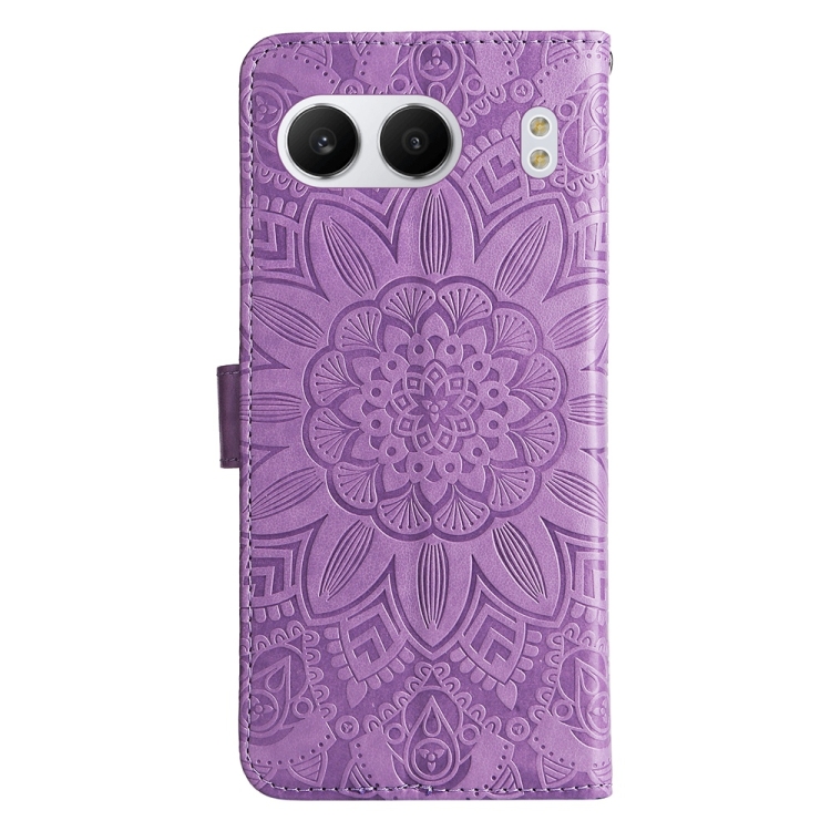 Funda de Piel para OnePlus Nord 4 con Estampado de Girasoles en Relieve (Morado)
