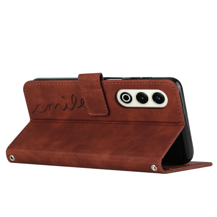 Funda de Piel con Relieve de Corazón y Cordón Largo para Teléfono Itel S25 (Marrón)