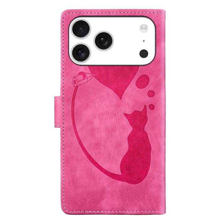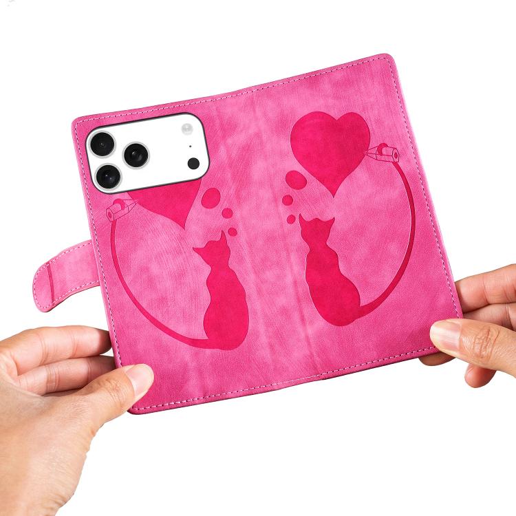 Funda de piel con relieve de gato y corazón para iPhone 17 Pro (rosa)