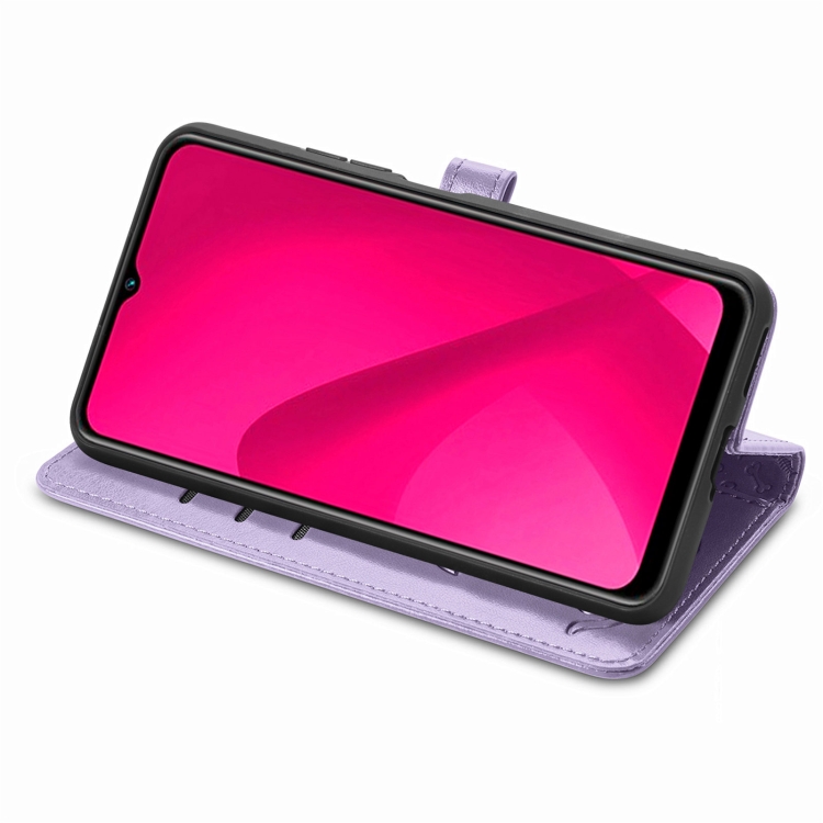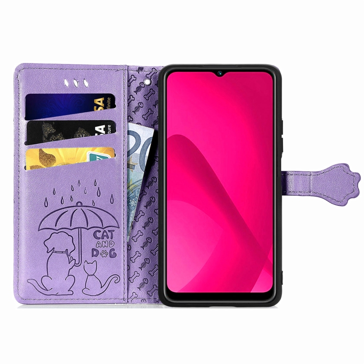 Funda de Piel con Relieve de Gato y Perro para Oukitel C53 (Morado)