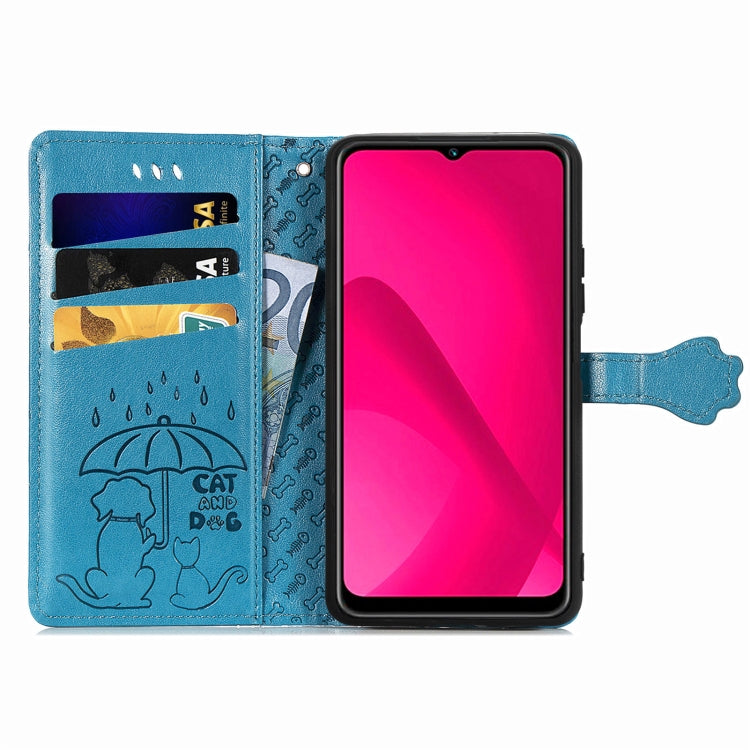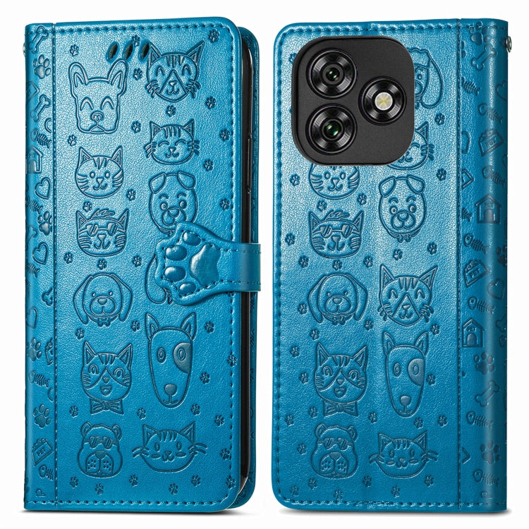 Funda de Piel con Relieve de Gato y Perro para Teléfono Oukitel C53 (Azul)