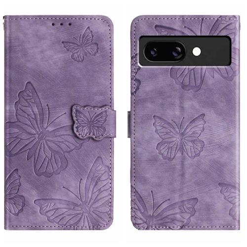 Funda de Piel con Relieve de Mariposa para Google Pixel 9A (Morado)