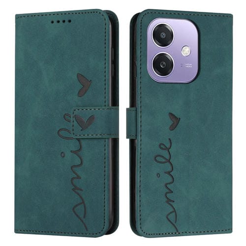 Funda de Piel con Relieve En Forma de Corazón para Oppo A3X 5G (Verde)