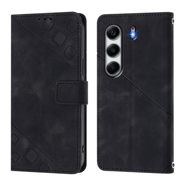 Funda de Piel con Relieve para Tecno Camon 40 4G (Negra)