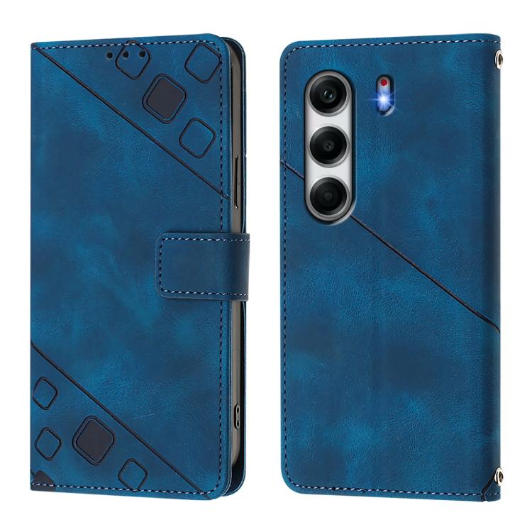 Funda de Piel con Relieve para Tecno Camon 40 Pro 4G (Azul)