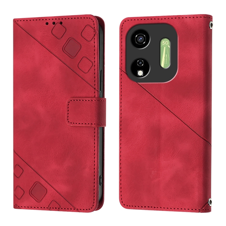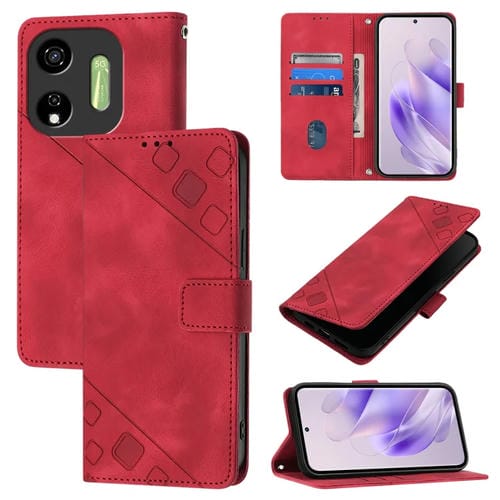 Funda de Piel con Relieve para Teléfono Itel P55 5G (Roja)