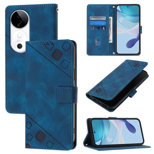 Funda de Piel con Relieve para Teléfono Vivo S19 Skin Feel (Azul)
