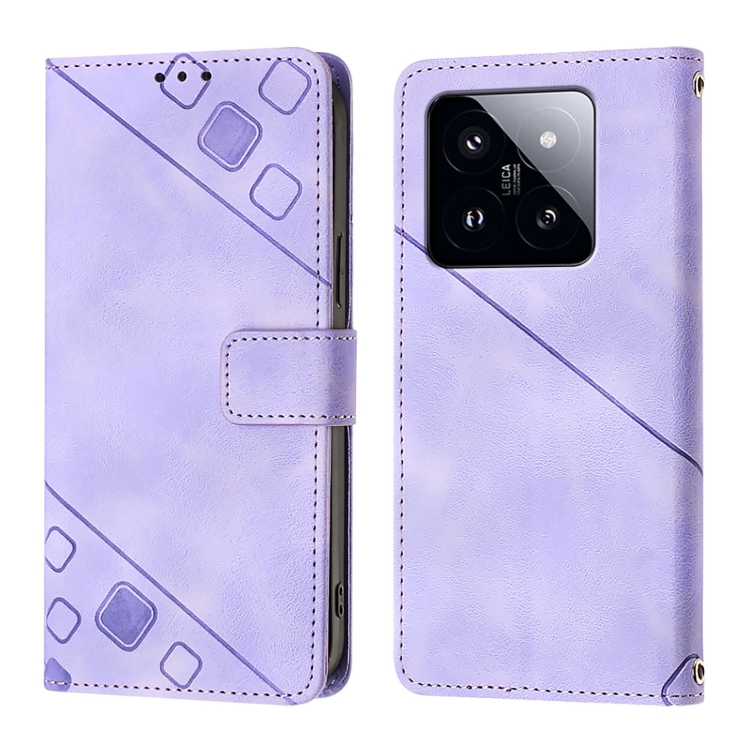Funda De Piel Con Relieve Para Teléfono Xiaomi 14 Pro Skin Feel (Morado Claro)