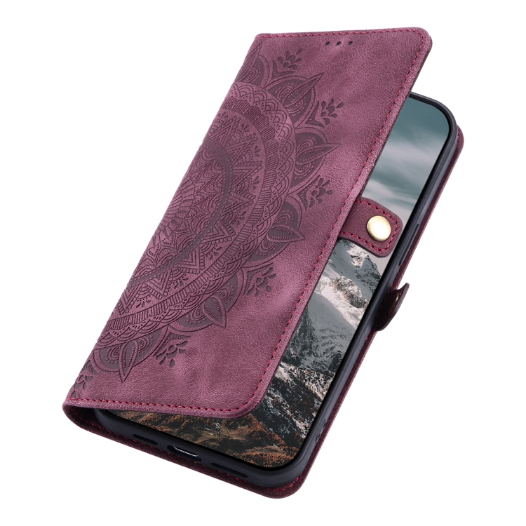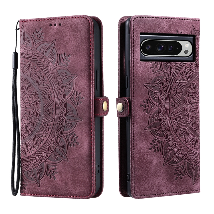 Funda de Piel con Relieve Totem para Google Pixel 9 Pro XL (Rojo Vino)
