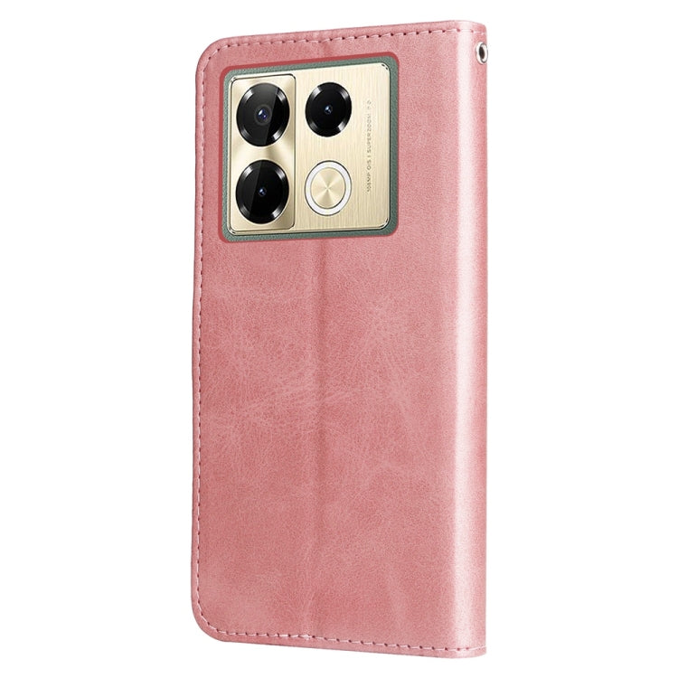Funda de Piel con Textura de Becerro y Cremallera para Infinix Note 40 Pro 4G/5G/Pro+ (Oro Rosa)
