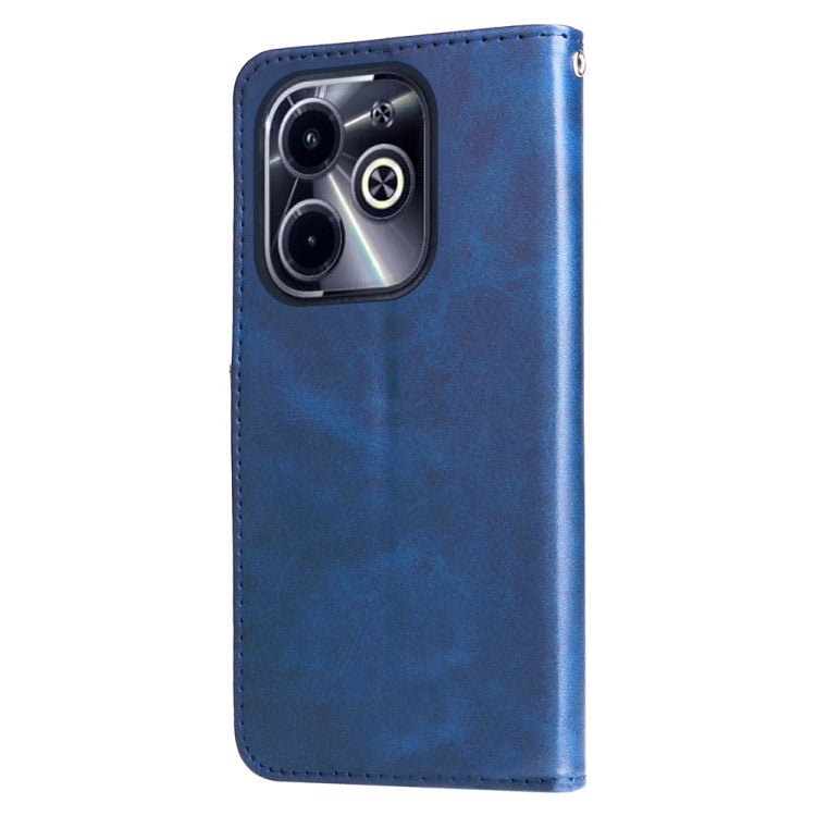Funda de Piel Textura de Becerro con Cremallera para Teléfono Infinix Hot 40I (Azul)