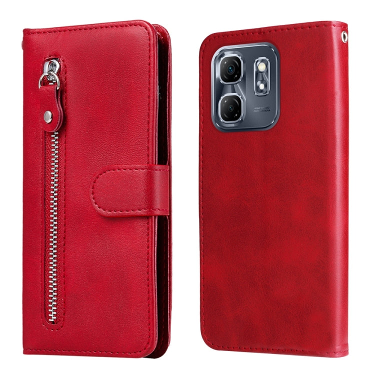 Funda de Piel Textura de Becerro con Cremallera para Infinix Hot 50I Smart 9 (Rojo)