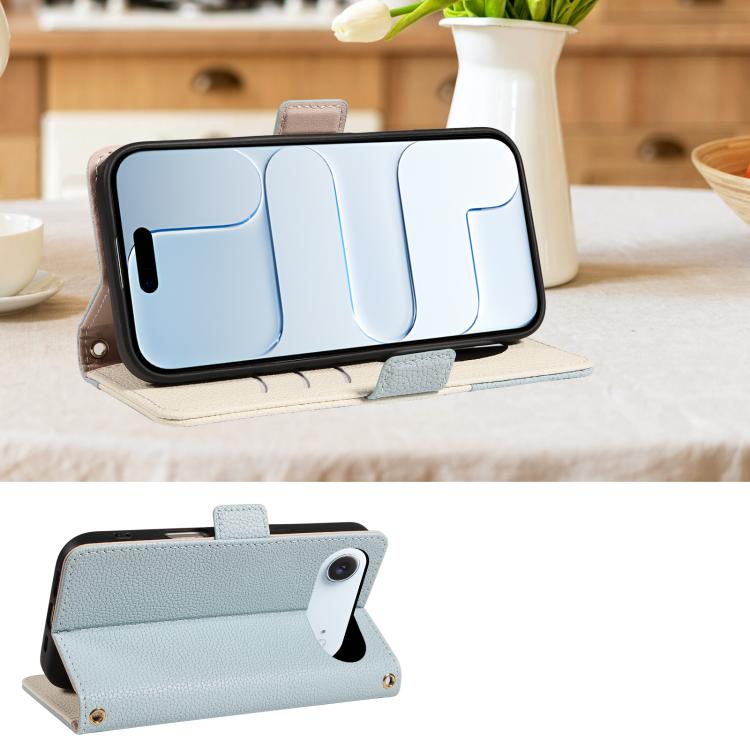 Funda de piel con textura de lichi y espejo para iPhone Air (azul)