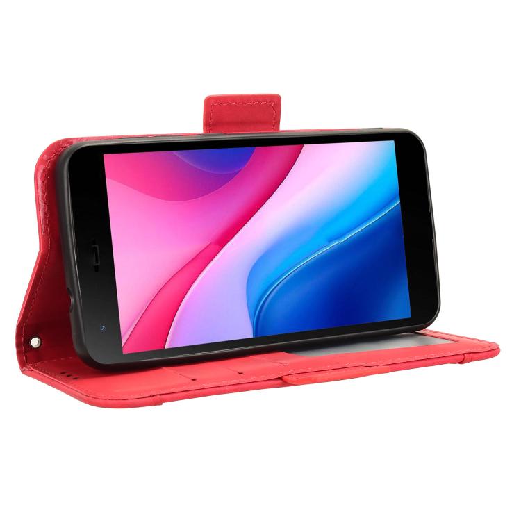 Funda de Piel Textura de Becerro con Ranuras para Tarjetas para ZTE Blade A35 Lite (Roja)