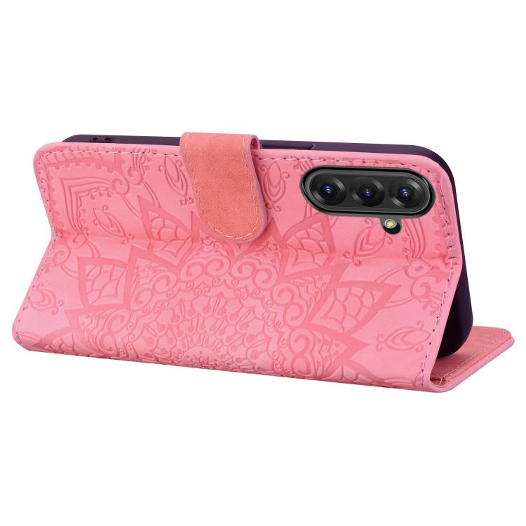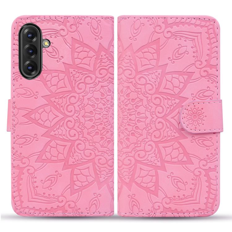 Funda de Piel de Becerro con Doble Pliegue y Diseño Mandala para Samsung Galaxy A36/A56 (Rosa)