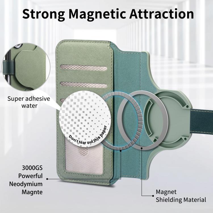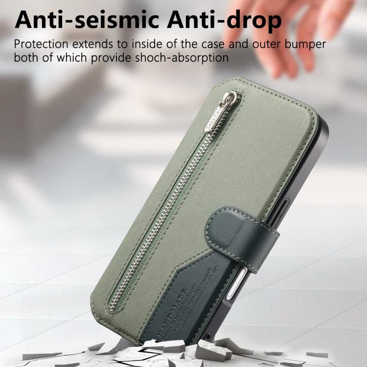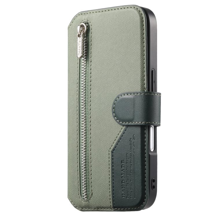 Funda de piel para iPhone Air, tipo cartera, con cremallera, MagSafe, RFID y protección antirrobo, fabricada en tejido de sarga (verde).