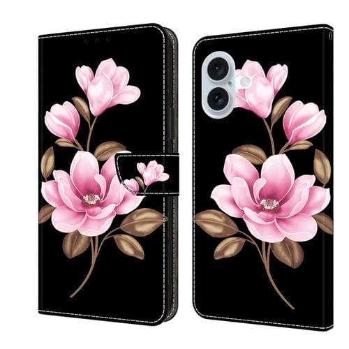 Funda de Piel para iPhone 16 Pintada a Mano con Flores Negras