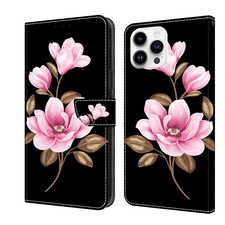 Funda de Piel Pintada Fresca para iPhone 16 Pro (Flores Negras)