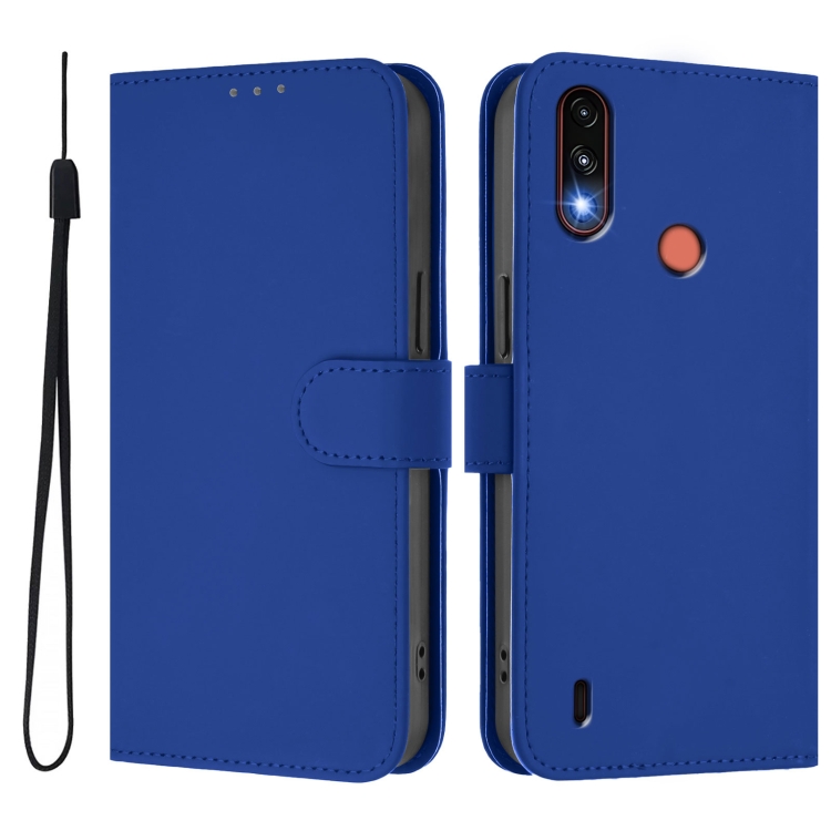 Funda de Piel Sintética con Cordón para Motorola Moto E7 Power (Azul Oscuro)