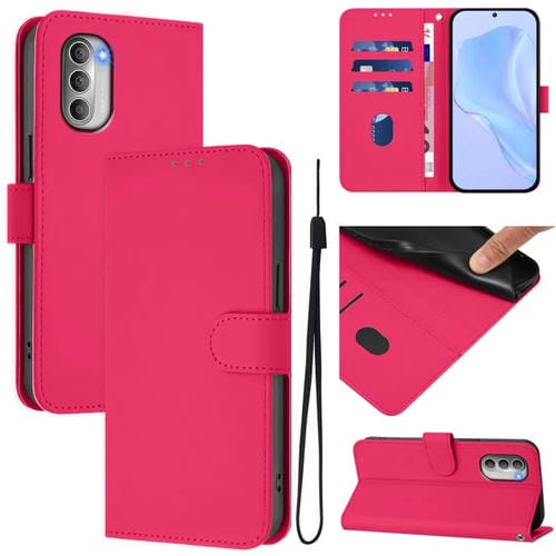 Funda de Piel Sintética con Cordón para Motorola Moto G51 5G (Rosa y Rojo)