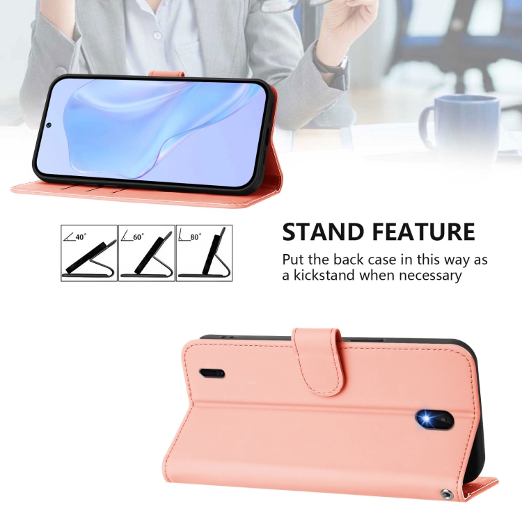 Funda de Piel Sintética con Cordón para Nokia C01 Plus y C1 2.ª Edición (Rosa)