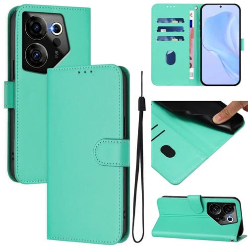Funda de Piel Sintética con Cordón para Tecno Camon 20 Premier 5G (Verde)