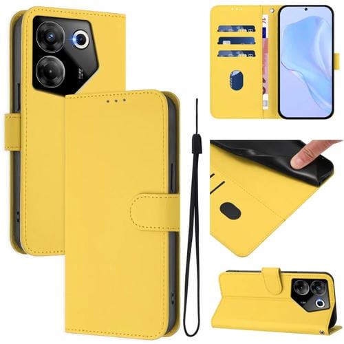 Funda de Piel con Textura y Cordón para Tecno Camon 20 Pro 5G (Amarillo Limón)