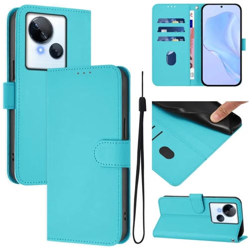 Funda de Piel para Tecno Spark 10 5G con Textura y Cordón (Azul Lago)