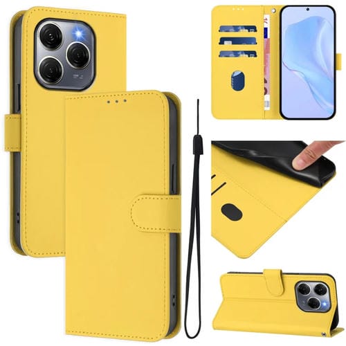 Funda de Piel para Tecno Spark 20 Pro 5G con Textura y Cordón (Amarillo Limón)