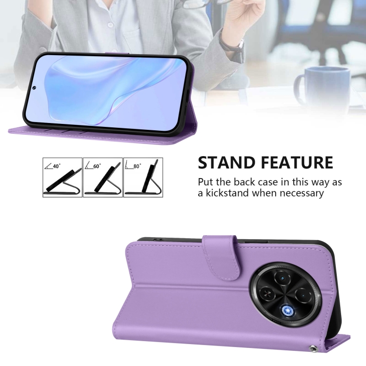 Funda de Piel con Textura y Cordón para Tecno Spark 30C 5G y Pop 9 5G (Morado Lavanda)