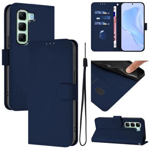 Funda de Piel Sintética con Cordón para Teléfono Infinix Hot 50 5G (Azul Marino)