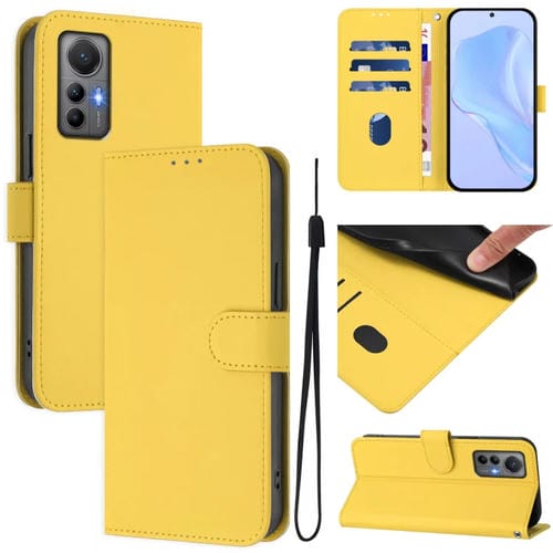 Funda de Piel Sintética con Cordón para Xiaomi 12 Lite (Amarillo Limón)